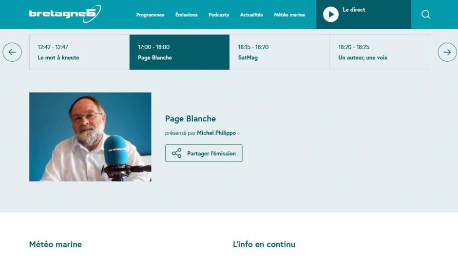 Le nouveau site de Bretagne 5 est en ligne. Découvrez de nouveaux contenus, suivez le fil info, retrouvez vos émissions et vos podcasts préférés, accédez à la grille des programmes, aux bulletins de la météo marine... Prolongement naturel de l'antenne, le nouveau site de Bretagne 5 est plus ergonomique, plus accessible et répond à de nouveaux critères technologiques, particulièrement en matière de sécurité et de navigation.