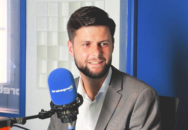 Émission du 25 juin 2024. Lucas Clément, candidat de la majorité présidentielle, sous l’étiquette "Ensemble pour la République", dans la 3e circonscription des Côtes-d’Armor pour les élections législatives, est l'invité de la matinale de Bretagne 5.